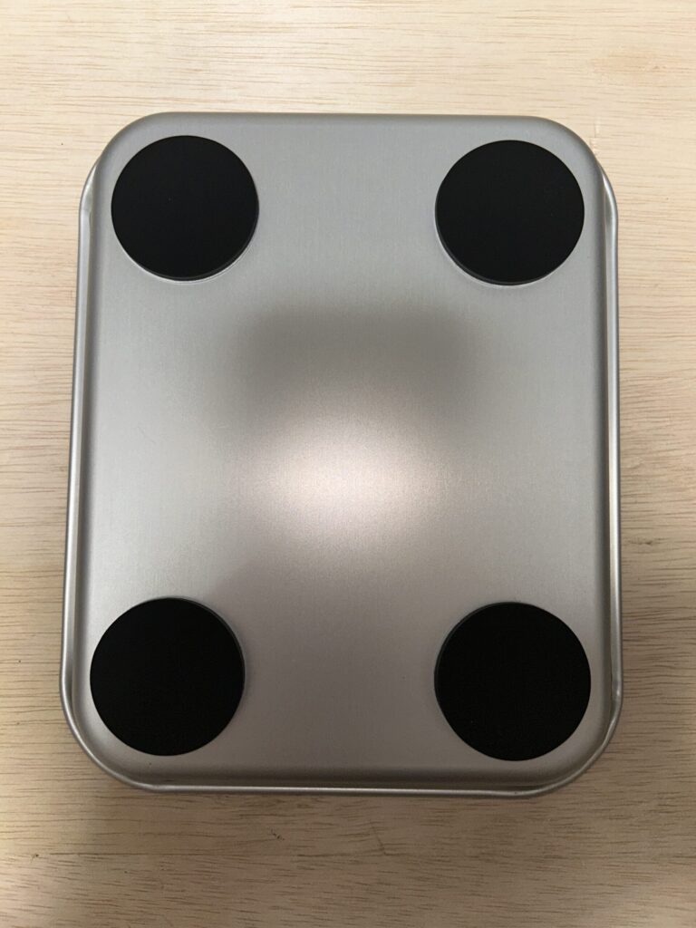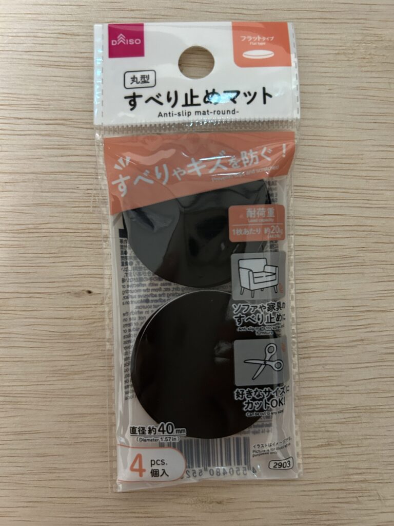 そのため、アルミトレーの裏に貼ったのが、同じくダイソーの丸型すべり止めマット。