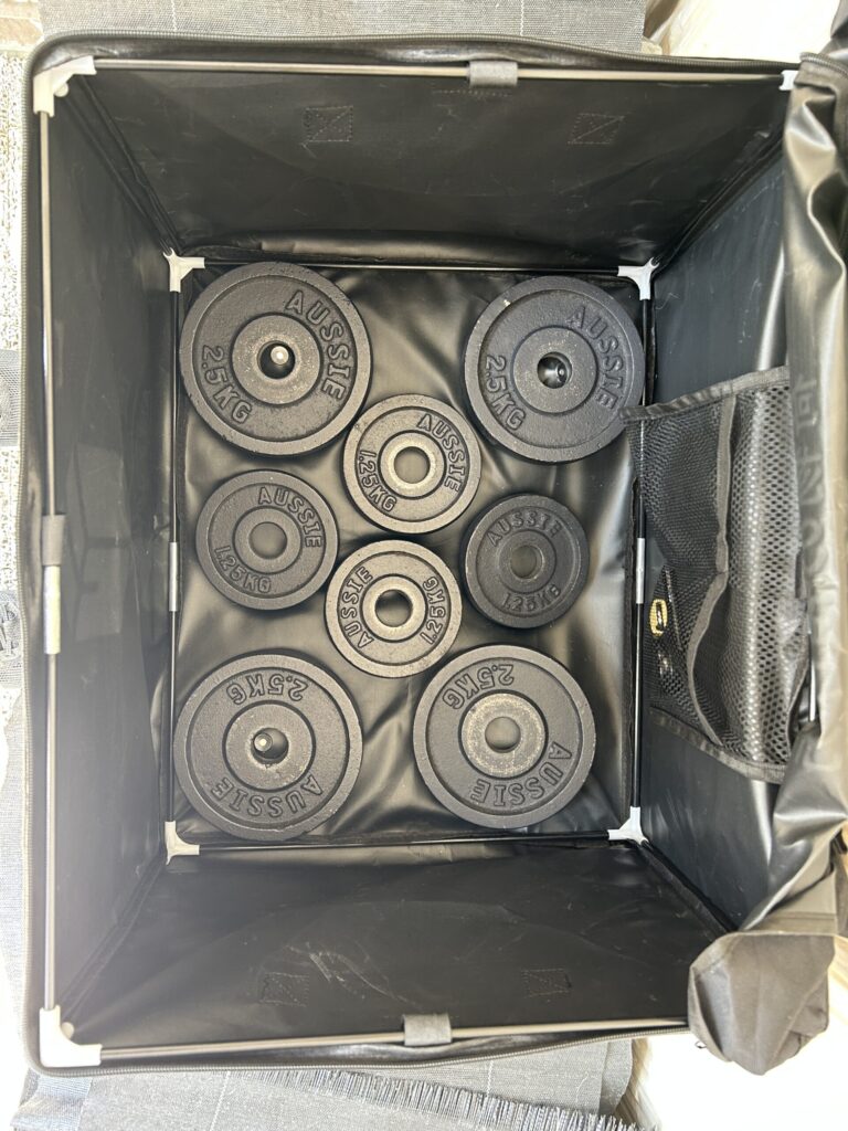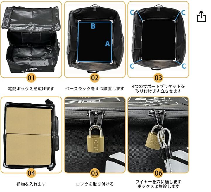 完成後は非常にしっかりとした箱型に自立し、側面がペコペコしないのも好印象。軽量ながらも耐久性は十分で、私の場合は「宅配ボックスの中に鉄プレート(ダンベルプレート)」を入れて、重りとして使用しています。こうすることで、強風の日でも安定感が増し、防犯面でも“ただの空き箱”とは違うぞという威圧感が出せます。