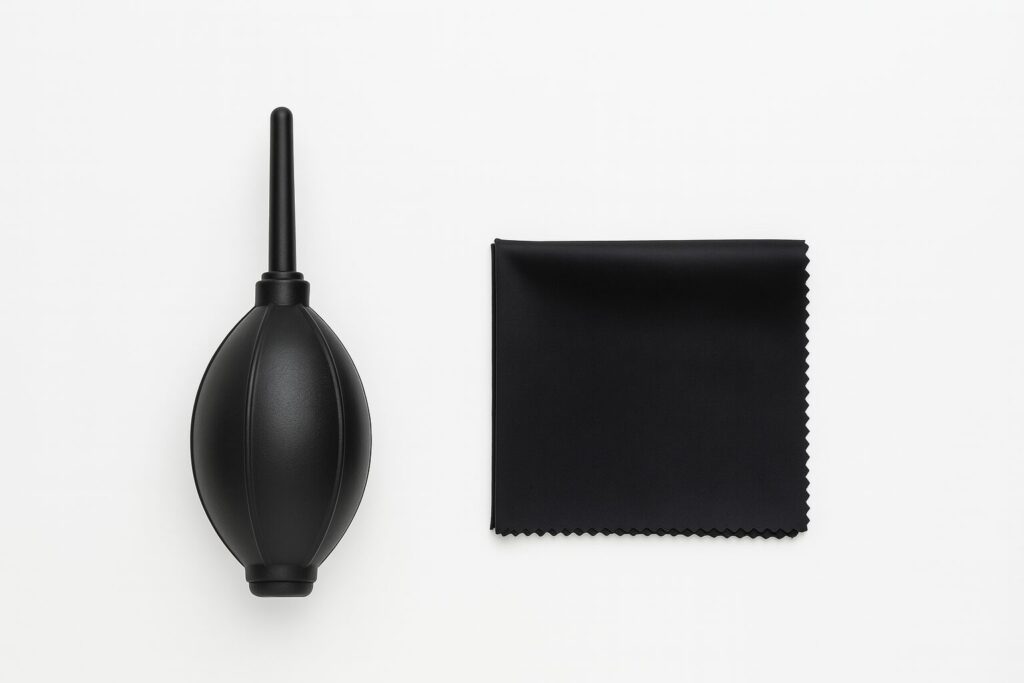 小さなトレイにクロス・ブロアー・充電ケーブルをまとめておくと便利です。