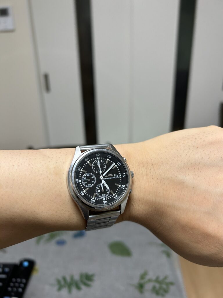 私がこのSEIKOのクロノグラフと出会ったのは20年前。まだ社会人として右も左もわからなかった頃、父が「これからは時間に責任を持つ立場になるんだぞ」と、照れ隠しのように言って渡してくれた一本です。